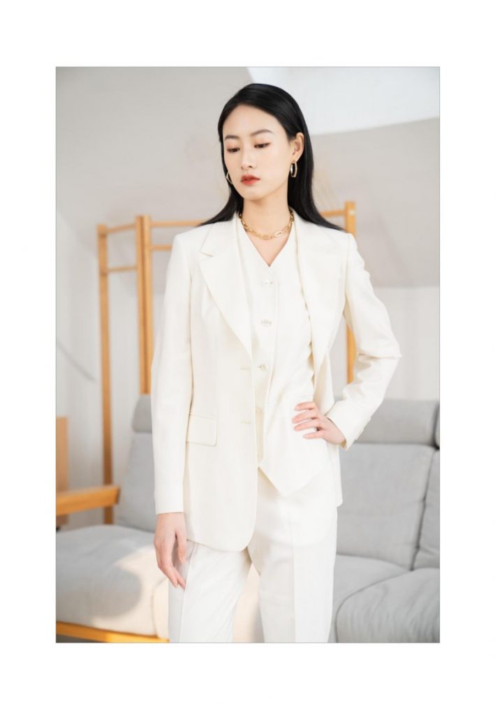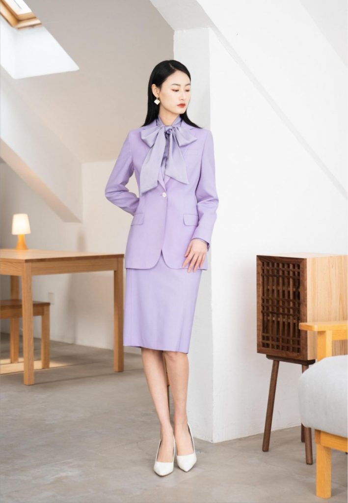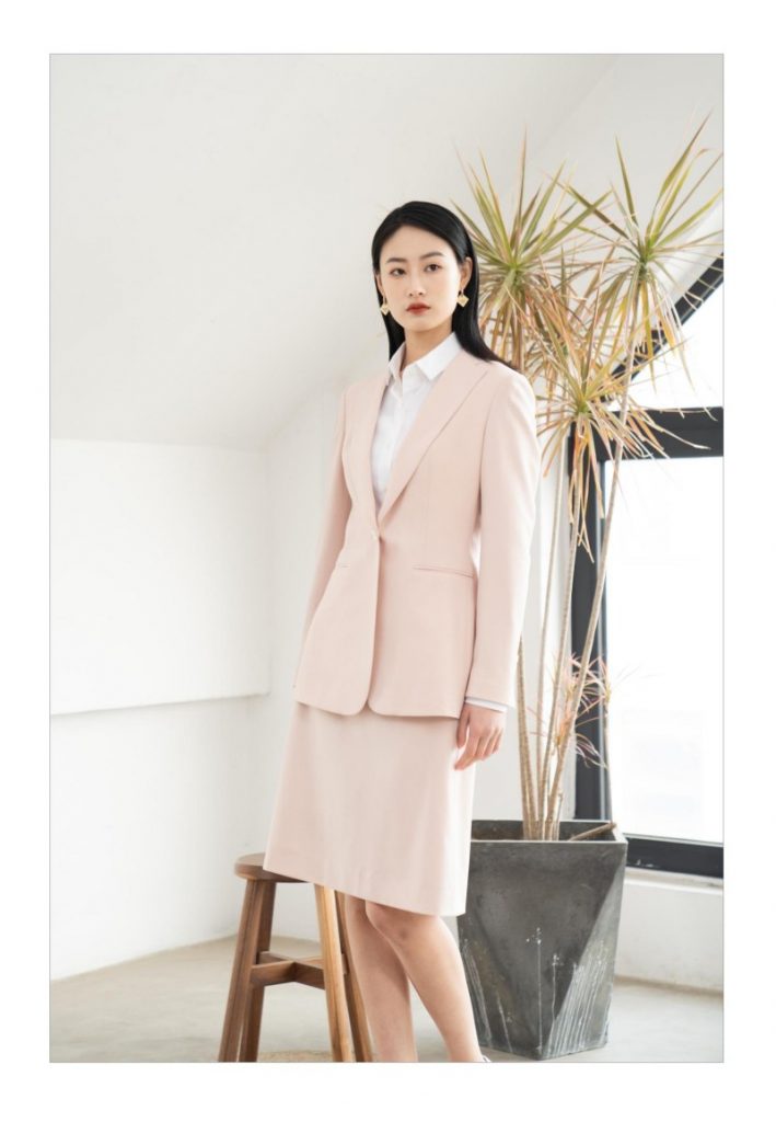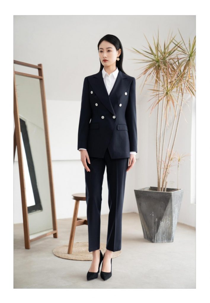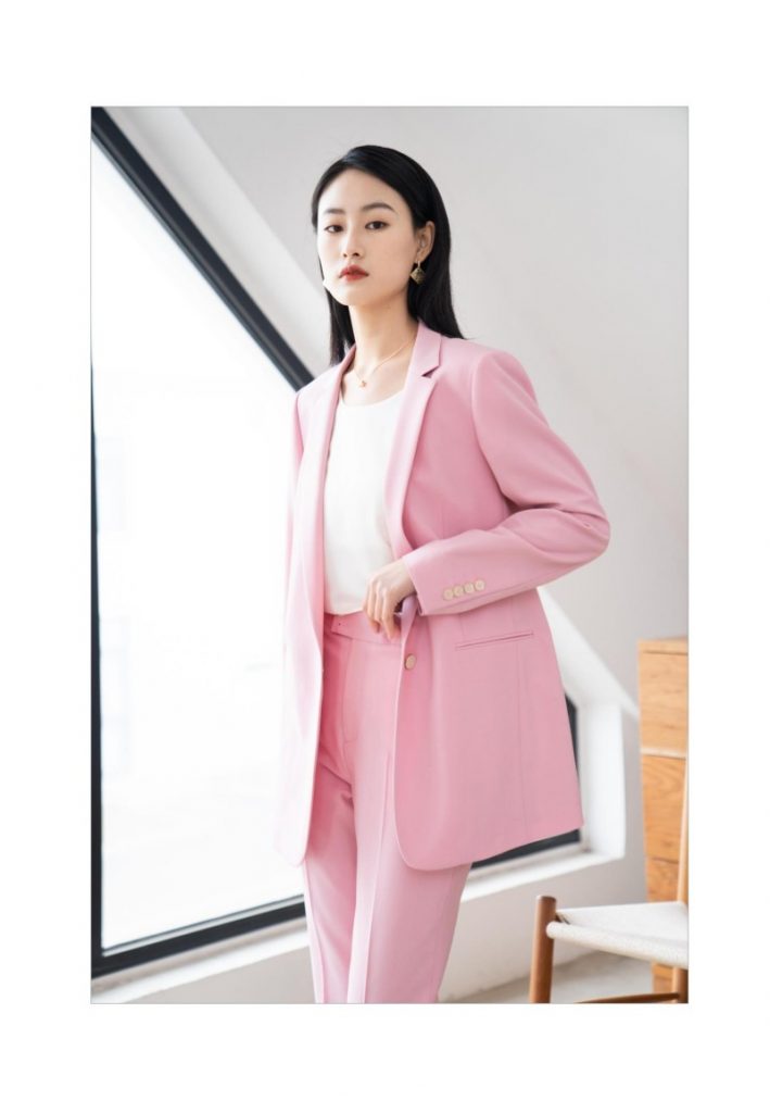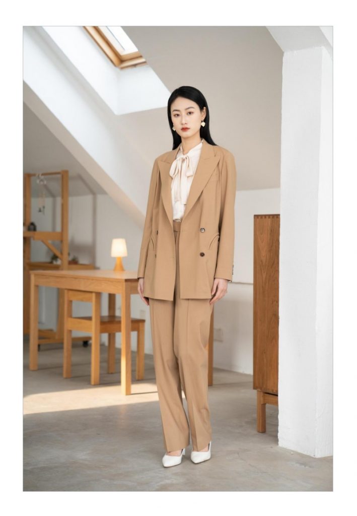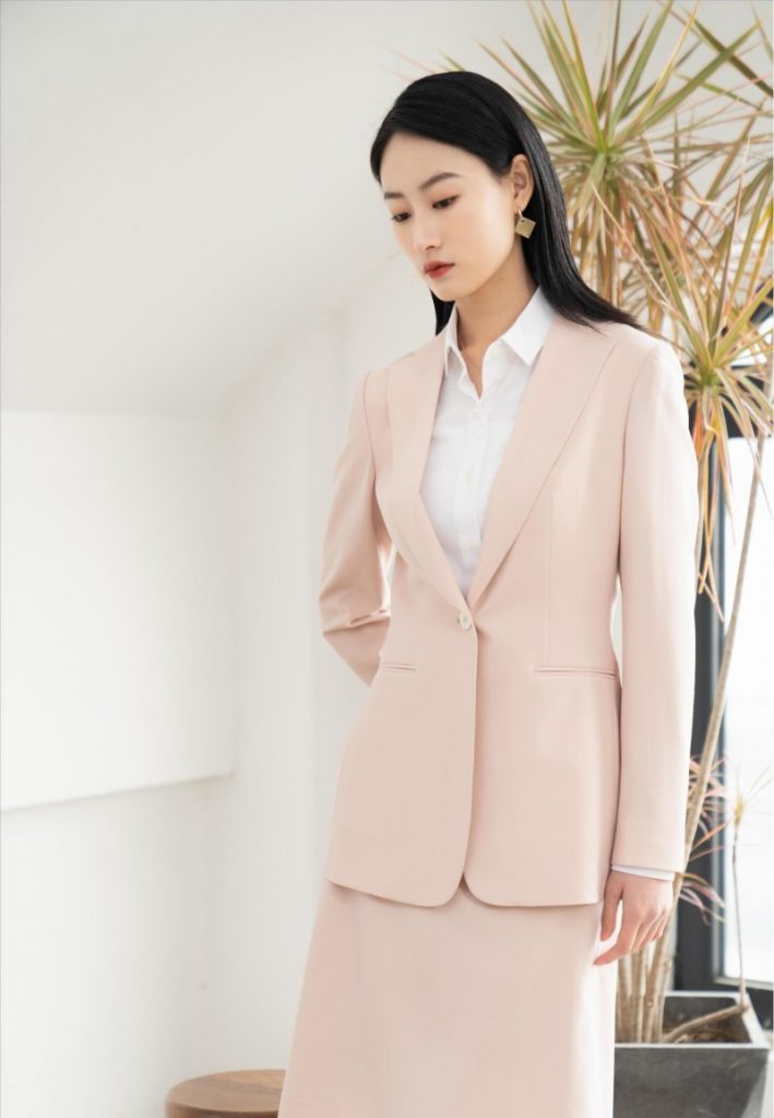 KT2302系列涵盖了从经典西装套装到创意连衣裙的全方位产品线。设计上,既保留了传统商务装的正式与干练,又融入了时尚元素,如不对称剪裁、立体装饰等,让每一件作品都散发出独特的个性魅力。此外,该系列还注重细节的处理,如精致的纽扣、独特的袖口设计等,都体现了品牌对品质与细节的追求。
