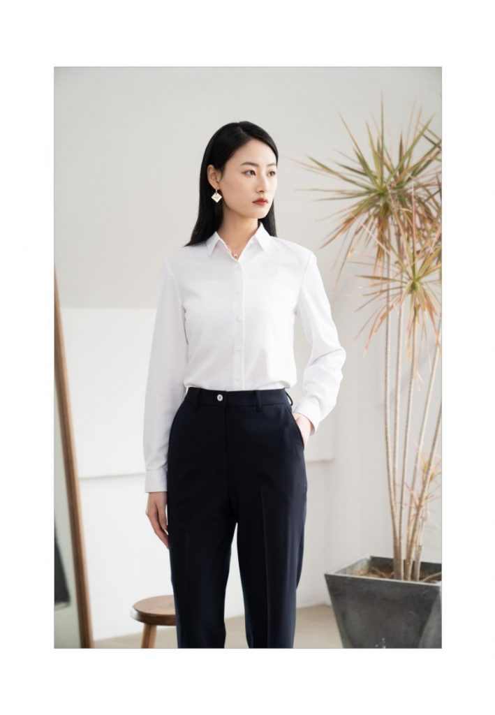 在面料方面,菲狮顿KT2302系列同样不遗余力。选用了多种高品质、功能性面料,这些面料不仅具有良好的透气性和吸湿性,还注重抗皱性与形态记忆功能。这样的选择确保了女性在长时间的商务活动中,依然能保持衣物的整洁与优雅。